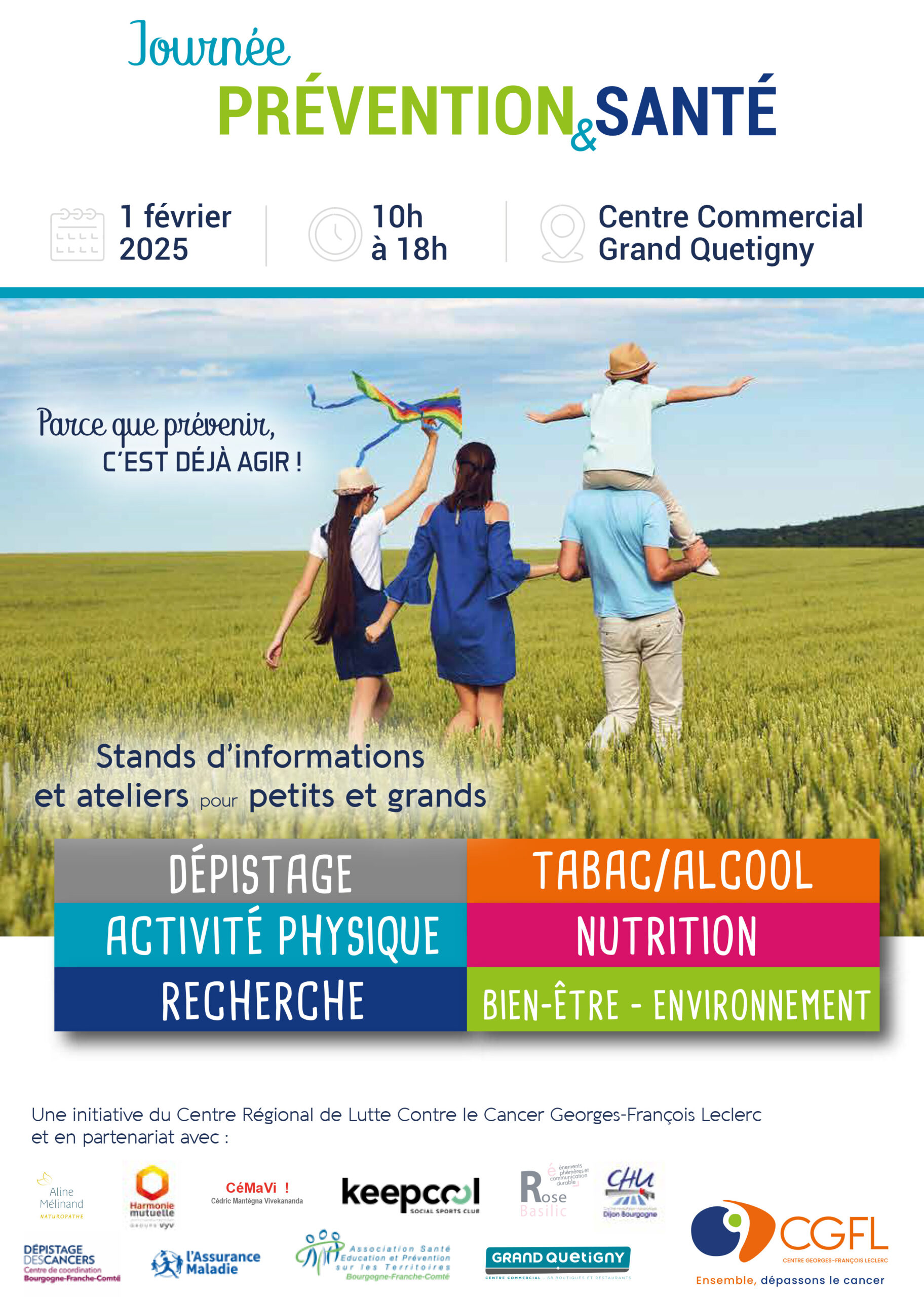 Depuis 2020, le Centre Commercial Grand Quetigny nous ouvre ses portes pour cette journée de sensibilisation. Nos professionnels de santé, accompagnés de nombreux partenaires, animent divers ateliers sur des thématiques variées, mais toutes avec le même point commun : prendre soin de sa santé !