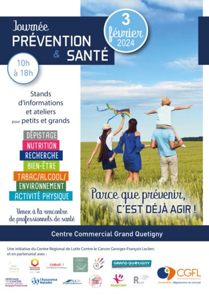 Le 3 Février 2024, le CGFL se mobilise au Centre Commercial Grand Quetigny pour la 4ème édition de ses Journées Prévention et Santé. De nombreux professionnels de santé et partenaires seront présents tout au long de la journée afin de sensibiliser le grand public les comportements à risque et combattre certaines idées reçues et de sensibiliser le grand public quant à l’importance du dépistage.
