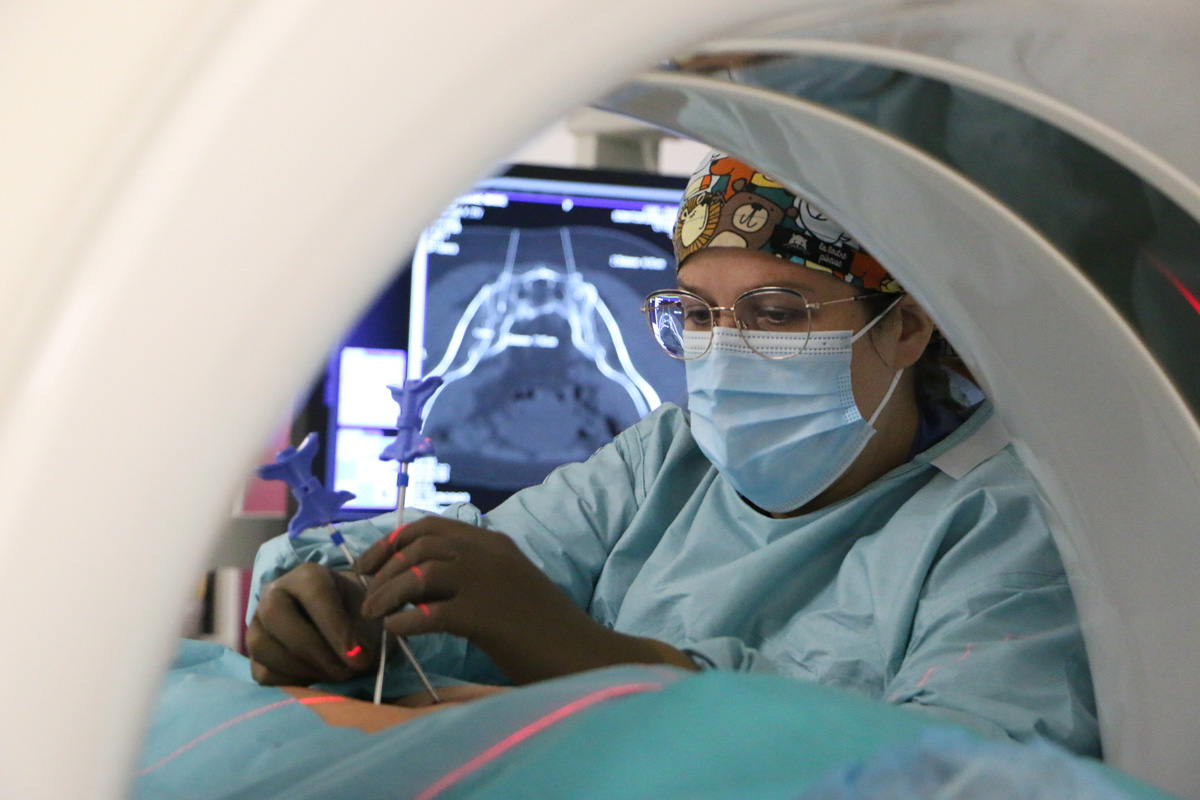 La radiologie interventionnelle est une technique diagnostique et thérapeutique dite « mini-invasive » qui permet d’atteindre des tumeurs profondes en utilisant les voies naturelles (comme le système urinaire ou digestif), le réseau vasculaire (artères ou veines), ou en empruntant un trajet court et sans danger à travers un organe